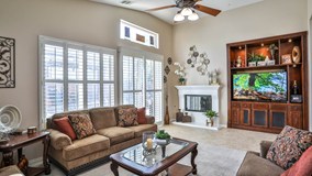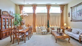 Family Pleaser! Welcome to Orangecrest the prestigious Mission Ranch community * This stunning and Rare Single-Story home featuring 4 spacious bedrooms * 3 bathes * 3 car garage * Appealing 10,019 sqft lot * Enter the gated private front courtyard walk into a distinctive double door entry * You’ll be wowed of the abundance of natural light with soaring 12-foot ceilings in this open-concept floor plan which features separate living and dining areas in addition to a spacious family room with built-in entertainment center and cozy fireplace * The family room opens to a gorgeous, upgraded gourmet kitchen with granite counters * Built-in stainless-steel appliances including a double oven * Built-in microwave oven * Pantry * Breakfast-bar * Great indoor laundry room * Other upgraded features include, window shutters * custom drapes window covering * Ceiling fans * Surround sound speakers system in family room * Prewired for spa in the built step up concrete corner in back yard * Front courtyard prewired for fountains * Toolshed side yard * Good size back yard Gazebo * Custom concrete all around home and back yard * Water fountain in back yard * Front porch circular concrete with rot iron and more * The vast master suite comes with a large, deep, spa-like soaking tub * Walk-in shower * 2 separate vanity areas * Dual walk-in closets * Front and back yard all done tastefully designed for entertaining and pleasing all your guests * Located near all services, shopping * Parks * Schools * and accessible access to 215 fwy and 91 Fwy *