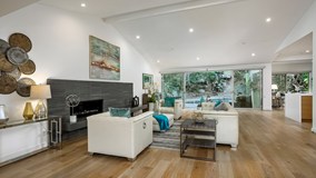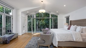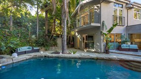 Privacy awaits you in this resort style indoor/outdoor entertainment friendly home. Bedrooms consist of private entire upper floor master suite w/ balcony overlooking the gardens, a junior master suite w/ garden views plus two other bedrooms downstairs. Open & flexible floor plan w/ living room w/FP and family room which lead to inviting very private backyard with tropical mature landscaping, sparkling pool, separate spa tub and rock waterfall. Chefs kitchen with top of the line SS appliances, island w/ large breakfast bar lined and backsplashed with Ceaserstone. Dining with large balcony. Family room could be closed off for a 5th bedroom. Fleetwood glass doors & ample windows allow plenty of natural sunlight through the house. Private and quiet BH adjacent property feels hours away while in midst of the city. Staged and easy to show.