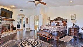 This is your rare opportunity to own this gorgeous Amberhill estate home with an amazing entertainers dream backyard with custom rock pool & spa with pebble tec surface, mature tropical landscaping and built-in BBQ island. This home has been beautifully upgraded with the highest quality upgrades including wood flooring, iron spiral staircase, plantation shutters, designer paint and granite counter tops. This stunning home features vaulted ceilings, open Kitchen with center island, 4 Bedrooms plus huge downstairs room with retreat and attached bath that can be used as a second master bedroom, in-home work area or gym/gameroom. Upstairs Master Bedroom has a fireplace and large balcony above the patio cover with incredible city light views! With RV parking, attached 4-car garage located in one of the most sought after areas in South Corona, this incredible home isn't expected to last long. Did I mention.... No Mello Roos or HOA!? Call today to schedule your own private and safe personal tour of this fantastic property.