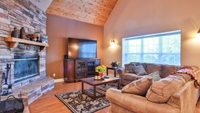 "Lakeview Court Castle", an unbeatable combo of location, lake views, amenities, and income. Right in the heart of Big Bear, around the corner from the lake and a short walk to the Village. Spacious enough for a crowd. Grossed just under 50K in vacation rental income last year. Incredible floor plan designed for entertaining multiple families in comfort and privacy. Features 2 wings each with cul-de-sac, garage, and driveway access to gorgeous mountain outdoors to enjoy with friends and family. East wing leads to entry and formal dining, expansive gourmet kitchen, main level bedroom and bath, and stairway that takes you to dual upper-level lake view master suites, 2 bedrooms, and bath. West wing features a family room with beautiful floor-to-ceiling rock fireplace and peek-a-boo lake view, 3 car garage, storage room, bathroom, and stairway leading to loft with attached game room. There's a large deck off the back for your summer night BBQs and even has an unfinished basement. Exceptional opportunity.