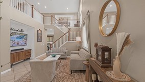Honey STOP the car! You won't want to miss this stunning and upgraded Sycamore Creek model- like- home! This one is sure to impress; tucked away in a completely serene setting while offering breathtaking views of the Cleveland National Forest hills. This home is both elegant and functional. Just some of the many interior highlights include fresh interior paint throughout, vaulted ceilings in the living room, grand staircase & upper floor. The upper level offers a huge loft or second family room along with a super private single upstairs bedroom with its own full bath. The stairs as well as the complete second level offer brand new plush carpeting. Newer luxury vinyl plank flooring can also be found in the primary suite, primary bath, secondary bath and downstairs secondary bathroom. The heart of the home is the GORGEOUS, updated kitchen offering a massive center island with a brand new Kohler Pro Function stainless steel sink and faucet. You will LOVE the loads of cabinetry and stainless-steel appliances along with the open concept to the adjacent dining room featuring a media niche, fireplace with custom mantel and accent lighting. LED lighting can be found throughout the home, with custom LED accent lighting in the formal living room, family room, and primary suite. PAID OFF solar will save you tons of $$$ along with the brand new energy-efficient Nest learning thermostat. Another INCREDIBLE feature of this home is the ground floor sumptuous master suite featuring upgraded luxury vinyl plank flooring, and a stunning custom decor accent wall, with a large walk-in closet. The master bath offers dual sinks, walk in shower and a jetted tub for the nights you want to unwind. The downstairs secondary bedroom also offers updated luxury vinyl flooring and is adjacent to the full hall bath. Every bedroom is completely separated from the other bedrooms adding added comfort and privacy. The indoor laundry room offers tons of cabinetry and is adjacent to the garage featuring a brand new epoxy floor and a brand new roll up garage door. Outdoor living at its finest in this backyard oasis! You will LOVE the complete privacy with no homes directly behind offering views of the rolling hills of the Cleveland National Forest. Enjoy the covered patio, gorgeous greenery, apple fruit tree, and a new artificial turf areas in the front and back yards. The rear yard offers a water feature, and a new rear fence line for added privacy and functionality. Sycamore Creek offers a low HOA fee and an abundance of amenities including the award-winning Todd Elementary (within walking distance) a clubhouse, fitness center, BBQ area & state-of-the-art swim complex with 2 pools, jacuzzi, and a splash pad. Enjoy nearby Deleo Regional Sports Park with basketball, baseball, tennis courts, walking trail, dog park, skate park, picnic area, soccer field, new pickleball courts, and BMX bike park! Don’t miss out on this exceptional home located in the hills of South Corona, close to everything you need and more! Interested in this home FULLY FURNISHED? Seller will accept $780,00 to leave it as you see it!