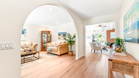 Welcome to this beautifully upgraded single-story home in the highly desirable Golden View neighborhood of Huntington Beach. Larger than most single-story homes in the area, this Franciscan Fountain home features 4 spacious bedrooms, 2 full bathrooms, and a layout designed with both comfort and functionality in mind. Enter through double doors into a welcoming family room, then move into the open-concept living room with soaring vaulted ceilings and a cozy fireplace, perfect for relaxing or entertaining. The home features new laminate flooring, fresh interior and exterior paint, and dual-pane windows throughout, creating a bright, modern atmosphere from the moment you step inside. The nicely appointed kitchen opens to the main living area, ideal for hosting family and friends, while a convenient indoor laundry room adds everyday ease. The generous primary suite offers a peaceful retreat with direct access to the backyard, where you’ll find a pergola and private spa—perfect for soaking under the stars or enjoying sunny coastal afternoons. Located in a serene, well-maintained community just minutes from Central Park, the Public Library, Senior Center, the Equestrian Center, Bolsa Chica Wetlands, and the Beach, this home delivers the best of Surf City USA living. If you're seeking space, style, and location—this one has it all. Don’t miss the rare opportunity to own a move-in ready home in one of Huntington Beach’s most coveted neighborhoods!