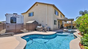 *TurnKey*Pride of Ownership* Built by Lennar homes in 2018. This 5 bed, 3 full bath home feels far bigger than the sq. footage advertised. From the moment you pull up to the corner lot home, you will be in awe with its curb appeal, but that will be far surpassed when you enter and see what this home has to offer. The Foyer is long and inviting and has fingers that sweep into the home's downstairs bedroom, the office and formal dining room. The designer paint throughout the home is elegant and tastefully done and matches the Tile "Plank" Flooring and highly upgraded carpet and padding. The transitions are smooth and seamless as you enter the Kitchen which is a chef's dream accented with "Rich" Dark Wood Cabinetry, Granite Counters expansive "Walk in Pantry" and all matching GE appliances. As one stands at the center island the view of the massive great room creates a visual of one's family enjoying family time together! The upstairs part of the residence is large and open and offers a teen entertaining room and 4 more spacious bedrooms and joint bathroom that offers a walk-in shower and dual sinks. The Master Suite is the piece-de-resistance! The room feels like your own personal hideaway from the world. The photo's do not do it justice. The Master Bathing area is accented by Quartz Counters, dual sinks a separate vanity area as well as large tub and separate shower, truly the best as one would expect in a home like this! As one continues past the shower, the walk-in closet is a welcome surprise! Almost as large as another bedroom, one will find all the room needed to store one's clothing etc. Last but not least; the rear yard is lavish and immaculately decorated with Plumeria and humming bird feeders. The pool is decedent and well laid out as is the covered patio and dual fans and side yard which are off the rear door of the home. I would be remiss if I didn't point out the huge RV Access area. The just over 36’ by 16' area (at its narrowest) is perfect for storing ones RV's and toys as is the massive 4 car tandem garage. Near by fine dining, shopping and entertainment galore and provides easy freeway access and comfortable traveling to San Bernardino, Orange and Los Angeles Counties! Add in the Solar System which is paid off and one has found the ideal home.