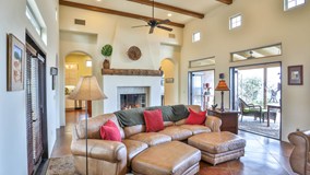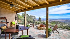 Welcome to “Casa Luna” overlooking the Santa Rosa Plateau…if you enjoy an ever-changing view you will love this one. A home built to take advantage of the plateau view, city lights, sun & moon rise. Enter courtyard via walkways on either side of garage to foyer entrance to great room-14' ceilings, high windows for moon & star gazing, unique fire place w/ notched log mantle, limestone hearth, beams line the ceiling, 3 sets of double french doors flank the view side of great room lead to the back covered veranda, multiple gardens, sitting areas & spa. Two sets of double french doors on the courtyard side. All rooms in the main living area open to the large private courtyard through double french doors. Interior with Spanish and CA influences, archways, scored & stained cement floors, designer paint colors & lighting sets the mood day or night. Large kitchen, abundant storage, glass fronted cabinets, ironwood island, white cabinets, Quartz countertops.