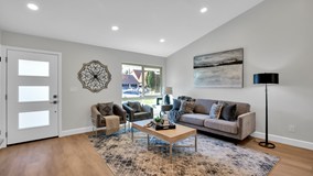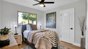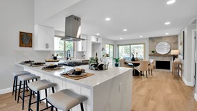 METICULOUSLY REMODELED SINGLE STORY HOME. Interior location within the desirable & centrally located Peppertree community (NO HOA DUES OR MELLO ROOS). As you enter through the upgraded front door, you'll be impressed with the soaring ceilings, open layout & attention to detail. Luxurious finishes like ultra-smooth interior walls, newer shiplap siding on exterior, new 2-panel doors, upgraded baseboards & casing, modern plumbing & lighting fixtures & top-of-the-line luxury vinyl plank flooring throughout. The DREAM KITCHEN gleams with Calacatta Quartz countertops with waterfall finishes on both ends, full quartz backsplash, shaker cabinets (w/ lazy Susan, trash/recycle bins & spice rack) with additional cabinetry for storage at the breakfast bar (seating for 4+), custom-made floating shelves, stainless steel sink & high quality stainless steel appliances. The living room has soaring ceilings & an included never used 65” Samsung 4K LED TV. The dining area is roomy & is accented with a floor-to-ceiling fireplace with a custom solid wood stained mantle. The primary bedroom is spacious & has dual closets with two rows of shelves/poles. The primary bathroom gives off 5-star hotel vibes that features a spa-like, over-sized shower with DUAL rain & handheld shower heads, glowing shampoo box, back-lit anti-fog mirror, electronic bidet with remote, linen cabinets & a barn door to efficiently separate the sleeping area from the bathroom. The secondary bedrooms upgraded closet doors & ceiling fans with remotes. Energy efficient improvements like a 19.5 SEER A/C & Heating system with updated ducting (2022), water heater (2022), Nest thermostat (2022), LED lighting throughout (2022) & dual pane vinyl windows. House has been REPIPED with PEX piping in late 2022! Nest doorbell is also included. TERMITE CLEARANCE! The yards are beautifully landscaped & accented with LED spot lighting. The backyard is surrounded with block walls & features an easy-to-maintain alumawood patio cover, grassy area & a raised planter with fruit trees. Store your favorite toys in the oversized 2 car garage (may fit 3 vehicles) with a freshly poured concrete slab & outlet for possible electric car charging. Walk to nearby park & tennis courts. Easy access to 5, 55, 405 & 261 freeways. Tons of great shopping at the nearby Village at Tustin Legacy & The District. Come see this pride of workmanship, so you can have pride of ownership from day 1.