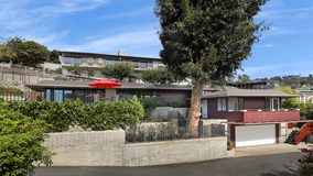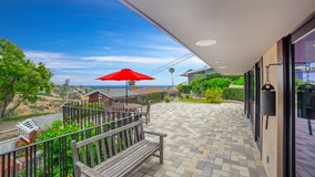 Ocean views and canyon panorama setting at the end of Wykoff Way. Renovated mid century classic with an emphasis on indoor/outdoor living. Nestled in Bluebird Canyon, this enticing piece of architectural history has been carefully restored to a progressive design and is surrounded by inspiring scenery. Modern double sliding door entry leads into the open living space with gas fireplace. Dedicated dining space is adjacent to the kitchen with Red Oak bar top and wine refrigerator. Contemporary kitchen with honed granite countertops, slate stone backsplash and custom maple cabinetry with pantry pull out storage. Clean lines and natural light throughout, including skylights in the kitchen. Stainless steel appliances including Dacor professional six burner gas range, Bosch dishwasher plus French door refrigerator/freezer and stackable Whirlpool washer/dryer included. Home has undergone extensive remodeling, inclusive of replacement of windows, doors, sliders, flooring, lighting, furnace/ducting, electrical, copper plumbing, media wiring, tankless water heater, roof. Two dedicated bedrooms plus a bonus for a third. Three modern bathrooms with tasteful selections of stone and wood materials. Two car garage with storage and workbench. Outdoors enjoy a large flat front view patio, garden yard with fruit trees and upper view terrace. Just minutes to The Village, beaches, Bluebird Park, Bluebird hidden tennis court and all the best of Laguna Beach.