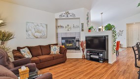 Fantastic single level home located in the highly sought after 55+ community of Mountain View. This super clean and upgraded home sits amongst a gorgeous backdrop of mountains and offers a TON of upgrades as well as community amenities!! Newly painted exterior, new garage door, newer added plants and landscape to front yard, new vinyl fence (one side only) just added. Newer upgrades also include all new upgraded smoke detectors throughout, new co2 detector, newer ceiling fans in bedrooms & family room, redone electrical, switches and cover plates throughout. Laminate flooring installed 4 years ago throughout entry, formal living and dining rooms, fam room, hallways. Kitchen was also upgraded 4 years ago with new kitchen sink, touch function faucet & temp lighting, and granite countertops. This home is light and bright and has an incredible open floor plan. The spacious master suite offers brazilion cherry wood flooring, ensuite bathroom featuring walk in shower, large soaking tub, dual sinks w/newer faucets, commode closet and a huge walk in closet! Secondary bedrooms are also spacious, one of them with a large walk in closet and the other with a window offering lots of light and a view to the front yard, perfect for an office or guest room. The rear yard has been upgraded with recent concrete work, covered area for lounging, landscaped rear hill and above ground jacuzzi for those relaxing evenings! This community offers a very low monthly HOA and meets many recreational needs - gym, library, BBQ with dining and lounging areas, and sports too - pool, spa and tennis! This community is also near to a golf course that was recently reopened and now available for those who enjoy golf. What more could you ask for? See this home today!