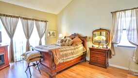 Welcome to this beautiful Newhall townhome just minutes from the San Fernando Valley and Valencia. As you walk to the front door of your private entry you are greeted by an array of beautiful roses. Incredibly maintained, this home features an attached two car garage, three bedrooms and 2 1/2 baths. The main living area has wood laminate flooring and recessed lighting. The kitchen and bathrooms have been updated. The light and airy living room with a stone fireplace leads out to a lovely patio with a water feature and plenty of room to BBQ and entertain. The three upstairs bedrooms have vaulted ceilings and one is a master suite with a walk in closet. The master also features a private upstairs patio. There is a community pool and a children's play yard. This home is absolutely in move in condition.