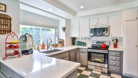 Sold in 8 days! Check out this immaculate Charter Glen home! Enjoy the peace, quiet, and safety of living at the end of a cul-de-sac. With tons of natural light, newer laminate flooring, and a cozy fireplace, the living room offers a warm and inviting space for you to fill with great memories, and the high, vaulted ceilings make it feel even more spacious. You’ll love cooking in the beautifully remodeled kitchen with quartz counters, recessed lighting, newer appliances, and a single-basin sink that’s perfect for larger pans that are otherwise tough to clean. There's an under-sink water filter for cleaner drinking water too. Enjoy a casual meal in the breakfast nook by the kitchen or enjoy a larger spread in the dining area by the living room. You’ve got so many options! Both bathrooms are updated with newer tile flooring, lighting, faucets, toilets, and quartz-topped vanities. The master bathroom also features a beautifully rebuilt shower with a frameless glass enclosure. Your skin will love the low-mineral water provided by the water-softening system, and it makes kitchen and bathroom cleaning easier with much less mineral build-up. Central A/C and the brand-new furnace combined with dual-pane windows will keep you comfortable year-round. The custom, cordless blinds adjust at the top and the bottom so you can get just the right combination of light and privacy. With just one step up at each entrance and no steps inside, accessing all parts of this home is easy. The door to the garage is located under the front porch, which means on rainy days you can open the garage with a remote-controlled opener and walk inside without getting wet. With lots of cabinets in the garage, you can stay organized. The perfect-sized back yard is just large enough for chilling, grilling, gardening, and gathering without too much work or maintenance. The pergola, two garden sheds, drip-watering system, Ring doorbell, stove, microwave, dishwasher, washing machine, and dryer are included with the house too. Cool off on hot summer days in the association pool. Need RV parking? Charter Glen has RV spaces available for rent. This location has convenient access to everything, including Ekstrand Elementary School, the San Dimas Sheriff station, Albertsons, the library, the post office, Marchant Park, Civic Center Park, City Hall, and a variety of shops and restaurants all within 5 minutes’ drive, per Google. Costco, Trader Joe’s, Wal-Mart, Target, Home Depot, and a bunch more shops and restaurants are all less than 10 minutes’ drive, per Google. Easy access to the 210 and 57 freeways means less time driving and more time living. Put it all together, and you’ve got a great home for a great life!