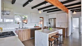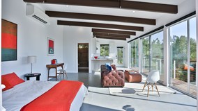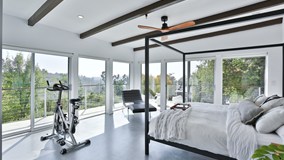 This stunning San Rafael Hills Mid-Century Modern compound is perched on multiple promontories boasting sweeping views from Century City to the ocean, Griffith Observatory, and the DTLA skyline. Never before on the open market, this architectural gem with a guesthouse and vineyard is more than a home; it is an experience. Architect Louis H. Huebner, Jr. showcased his design on Better Homes and Gardens cover in May of 1954. The current owners honored the original design through extensive architectural research and planning; they added an expansive primary suite and guest house in 2018 to bring modern conveniences to this retreat. Beamed ceilings support floor-to-ceiling windows framing jaw-dropping views from almost every room. The property sits on nearly ½ acre of land and was designed to take full advantage of indoor and outdoor living. This impressive compound is an entertainer's dream, with an open living space, glass walls, and polished concrete floors. It includes a tranquil koi pond with a glass walkover, multiple private patios, an expansive yard, an enclosed vegetable garden, a wine-tasting room, a custom wine cave, outdoor barbeque, and a vineyard of 30 mature Cabernet and Chardonnay grapevines. Enjoy and share the experience of producing 8-10 cases of your private-label wine every year! Need party space for 150+ of your closest friends or a quiet reading space tucked into the trees? No problem, this home has it all! This property features 4 bedrooms and 5 baths bathed in westerly light. Chefs and party hosts will enjoy the open kitchen, waterfall marble island, and luxury appliances to stage dining for every occasion. The west wing addition offers incredible city and treetop views from every angle and includes private patios, an en suite custom-designed spa retreat with marble wrapped double shower, jetted Japanese soaking tub, steam room, and private outdoor spa patio. The two-car garage offers plenty of room for cars, storage, and ample driveway parking. Escape through a tunnel of trees to the self-watering vegetable garden, fruit trees, and prominent weeping elms. The original architect's drawings inspired the detached studio guesthouse. Enjoy this creative work, play, or guest retreat with elevated ceilings and glass walls. Welcome to the Glass House on the hill at 1448 Brixton Road; not just a home…an experience!