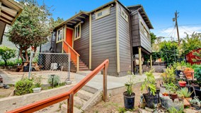 Experience the enchantment of owning a truly remarkable property, nestled in the hills of Cypress Park. This is an investment opportunity that transcends the ordinary, allowing you to build a lasting legacy while basking in the allure of a dreamy lifestyle. Prepare to be captivated by this extraordinary hillside compound, boasting not just one, but three exquisite craftsman homes on a sprawling street-to-street lot. As you approach the front home, 440 Ulysses, you will be transported back in time to the golden era of Los Angeles. This magnificent residence, a splendid homage to the city's rich heritage, exudes elegance and charm. Step inside to discover a world of architectural marvels, from the coffered ceilings and built-in features to the original floors that bear witness to the passage of time. Both the grandeur of the oversized kitchen and a stately fireplace, create a captivating ambiance throughout. With 3 bedrooms and 2 bathrooms, this dwelling offers ample space. But the wonders of this property do not end there. Prepare to embark on a journey down the hill, where you will encounter two adorable craftsman rentals that will not only ignite your imagination but also offset your mortgage. The first is a picturesque one-bedroom, one-bathroom cottage, enchanting in its simplicity. Complete with its own yard and front porch, this cozy abode beckons you to unwind and revel in the tranquil surroundings. Descend further to discover the recently remodeled 2-bedroom, 1-bathroom bungalow, nestled at the bottom of the lot. Radiating with modern elegance, this dwelling is accompanied by its own yard, storage facilities, and a private driveway. Remarkably, both of these homes on James Street are already leased to exceptional tenants, ensuring a steady stream of supplemental income from the moment you become the proud owner. Imagine the possibilities that await you within this extraordinary investment. It is a dream come true for first-time home buyers, offering the opportunity to reside on a cul-de-sac street and savor a lifestyle where monthly payments are even lower than current rental rates. Embrace the chance to create a legacy for generations to come, while relishing in the splendor of this idyllic setting.