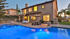 VERY RARE West Riverside Lake Hills home! SPECTACULAR VIEW, INFINITY POOL, ONE BEDROOM & BATHROOM DOWNSTAIRS, CUSTOM CROWN MOLDING THROUGHOUT THE WHOLE HOUSE, TWO MASTER BEDROOMS. Highly desirable Lake Hills Home featuring 5 bedrooms, 4 baths. Front Yard is completely hardscaped and landscaped, custom steps and driveway give great curb appeal. Backyard features infinity pool, terraced backyard with plenty of space to entertain. Gaze at the Stars on Master Balcony. Upstairs features a 2nd Master Bedroom that is currently being used as a Theater Room. CLOSE TO THE METRO LINK STATION, the 15 & 91 Fwy's, Grocery, Starbucks, Galleria. Low HOA.