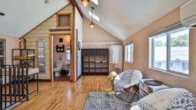"The Carriage House", located in a quiet section, on Carriage alley between E & F Streets and Fern & Vine Ave. was built by W. O. Campbell in 1911. A rare opportunity. Own a piece of history. This current single family home was originally designed to hold three horse-drawn carriages or early automobiles. A hayloft was built on the second floor. In 2000 it was completely restored by a well-known local artist, Rick Caughman, who was using it as a studio and living space. It was designed by the acclaimed Claremont architect Fred W. McDowell. McDowell left an impressive legacy with places like the Pomona College House, The Claremont Tennis Club, and the First Church of Christ in Claremont. Maintaining the Historic integrity of the Carriage House, this residence offers tall ceilings, 9 feet on the lower level and 12 feet upstairs. The lower level provides a living area, an industrial kitchen, and an outside patio. Appliances include new refrigerator, microwave, stove/oven, and new washer and dryer. In the corner stands an energy efficient pot-bellied stove that provides ample heat. A wrought Iron Spiral staircase ascends to the second level featuring an open flexible living space with oak hardwood floors, vaulted beamed ceilings, six windows, four sky lights, and a full bathroom. The exterior projects the original charm of the rustic Carriage House, including a one car attached garage. Noted artist, Dan Romero was commissioned to create the Wrought Iron fence providing privacy. The city of Ontario designated this property Historic, Landmark No. 7. Property is eligible for the Mills Act considerably reducing the buyer’s property tax. Recent improvements include: newer roof (Presidential Shake with 50 year warranty), four skylights, interior pendant lights, exterior paint, repaved the driveway with reinforced rebar, painted the front Wrought Iron fence, added white vinyl side fences, new façade on the front barn doors, new water heater, reverse osmosis water system installed in kitchen, whole house fan, mini split heater and air conditioner system, and an outside washer and dryer custom enclosure that matches the house – all permitted by the city of Ontario and approved by the Ontario Historical Society. Seller welcomes conventional, FHA, VA, or all cash financing. Seller offers any Buyer a 1-year home warranty plan.