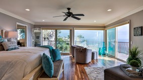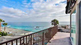 Situated on a bluff overlooking the South Laguna Beach coastline, this beach house is on the ocean side of Pacific Coast Highway! It is a short, scenic walk to the sand by way of a private beach access staircase which takes you to one of the most beautiful beaches in Laguna Beach - Table Rock Beach. Enjoy breathtaking views in this large custom home where you can hear the waves crashing while enjoying a 180 degree view of the gorgeous sunsets, boats, whales and dolphins that frequently visit this cove. Conveniently located to restaurants, shops and a quick trolley ride to downtown Laguna Beach. Part of this home's charm is that it is tucked away in a quiet, secluded location but once on Coast Hwy, you are minutes to Five Star Resorts, Golf, Tennis, Main Beach, Dana Point Harbor and more. Wrap-around balconies with spectacular views from second and third floors. Well-appointed kitchen offers all the ammenities of home. 5-burner cooktop, microwave, coffee maker, plus wet bar with ice-maker and wine fridge. This home offers high speed internet, DirectTV with premium channels, board games and DVDs. Tommy Bahama furnishings, ceiling fans, wood and slate floors, two fireplaces, BBQ and Jacuzzi. First floor studio may also be included.