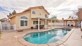Highly upgraded pool & spa Home in Orangecrest. This beautiful home has four bedroom and three bathrooms, with a separate living room and dining room area, and has family room with a fireplace open to the kitchen. MAIN FLOOR BEDROOM and BATHROOM WITH SHOWER AND EXTERIOR DOOR TO POOL. The house also features WOOD LAMINATE FLOORING THROUGHOUT most of the bottom floor, THE UPSTAIRS LOFT, stairs and hallways, kitchen and bathrooms have ceramic tile. WHOLE HOUSE FAN! The kitchen features granite countertops, stainless steel appliances with a brand new stove/range. The upstairs loft area upstairs could be used as a play room or an office. Newer central air system and water heater. The backyard is the perfect out door entertaining area with a large Alumawood covered patio w/ceiling attached to the back of the house along with a newer pebble-tech bottom swimming pool and spa. The stamped concrete decking is perfect for lounging with a second covered patio/barbecue area that is bolted down at the corner of the yard. Vinyl fencing at the backyard with a large side yard and a 3 car garage with new epoxy flooring coat over the concrete. The location is prime and is walking distance to Bergamont Park and super close to highly rated schools like Riverside's MLK High School, Earhart Middle School and Mark Twain Elementary. (Buyer to verify school districts) A