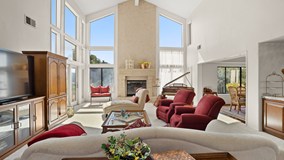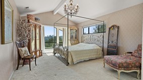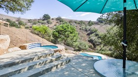 This custom contemporary estate is situated on over 1.5 acres between Chino Hills and Brea/Yorba Linda off Carbon Canyon Road in the gated community of Oak Tree Downs. A gorgeous home that features amazing 2 story vaulted ceilings with walls of windows overlooking the expansive grounds and hills beyond. The great room demands attention as you enter. You’ll immediately be drawn in by the openness of the high ceilings and the light from the massive windows. The elegant fireplace is also an attention getter and is the centerpiece of the room. The designer kitchen is a work of art. Features include leathered quartzite counter tops, hand painted travertine tile backsplash, travertine flooring, a hammered brass sink, custom solid wood cabinets with pullouts and top-quality appliances. The dining room features crown molding, has space for a large dining table and is open to the great room. There is a wide hallway that leads to 2 bedrooms, 2 bathrooms and an office downstairs. The downstairs office could be a 4th bedroom. Upstairs is the beautiful master bedroom, attached bath, sunroom and bonus office or craft room. The upstairs hall is open to the great room below and has beautiful views of the oak trees and hills. The master bedroom and bath are like a Zen retreat. The bathroom is amazing with its large soaking tub and separate shower. Relaxing here would be easy. In the mornings, you could wakeup to your view from the sunroom and be inspired every day. The outdoors can be enjoyed from every angle while sitting on the stone patio with lattice cover on the west side of the house and on the other patio just outside of the kitchen on the east side. Outdoors, the waterfall cascades down the hillside into the sparkling pool. The spa is situated just above the pool area amid the oaks. There is a long concrete driveway leading up to the parking area and 3 car garage. Here you have the best of both worlds, with the beauty, seclusion and natural setting of the canyon area and the convenience of living near town with shops, restaurants, schools and the 57, 71 and 60 freeways close by.