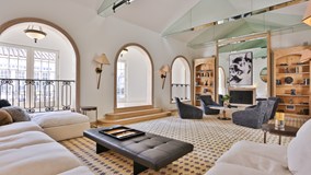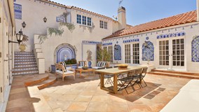 The finest opportunity in Beverly Hills. This charming Spanish rests on over a 1/2 acre flat with circular drive and electronic gates. Main house has 5 bedrooms and guest house has 2 bedrooms and a kitchen. Lighted tennis court, all tiled pool, spa and privacy. Living room with coved ceiling and family/theater room with high beams. Archways throughout the interior, 2 story entry, French doors open to and wrap around a classic Spanish center courtyard. Primary bedroom plus one guest bedroom upstairs with elevator serving both levels. Live in now or further update later but this is, by far and by any standard a wonderful opportunity to live north of Sunset in Beverly Hills. Private appointments now available at this newly priced home.