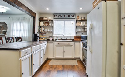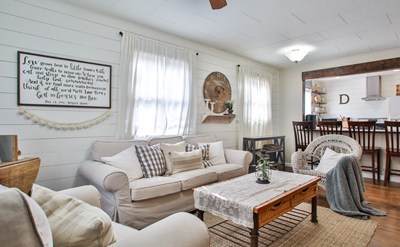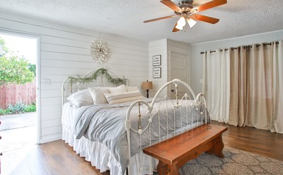 This quaint bungalow style 2 bedroom, 1 bathroom home is BIG on character! Sitting on a 6,970sqft lot, this charming farm house styled home features a comfortable family room with laminate wood flooring that flows through the entire home. The faux shiplap accent wall runs through to the rustic farm house inspired kitchen that features beautiful dark stained wood countertops with eggshell white cabinets, brushed nickel hardware and open country style wood shelving. Subway tile backsplash and modern stainless steel stove, vent and recessed lighting bring modern touches to this space. The eating area is just off the kitchen with direct access to the side yard. The farmhouse style flows through to the bathroom with country style wood furniture style countertop, hexagon tile flooring and subway tile step in shower. The shiplap accent wall flows through to the spacious master bedroom with rock faced wood burning fireplace with built in white shelving and mantle. The washer & dryer are conveniently located in the closet. The attached enclosed patio is currently used for more storage and as a closet and has so many possibilities. The 1 car detached garage is set back behind the gate offering more privacy and security. The backyard is a blank slate with plenty of room for later additions, pool, or play set. Located close to the 91 frwy , CBU, and shopping, this home is a must see.
