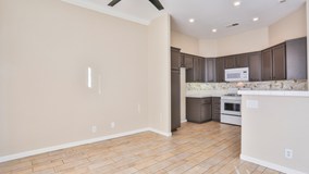 Hard To Find Single Story in South Corona! 3 Bedroom, 2 Bathroom Home on a Large Corner Lot. Step into the open living room featuring crown molding and beautiful tile flooring with carpet inlay. The living room opens to the eating area and kitchen. The kitchen features a breakfast bar, recessed lighting, unique tile back splash and dark cabinets that compliment the space. The eating area also has crown molding and a ceiling fan. The master bedroom has a sliding door to the backyard, crown molding, ceiling fan and in suite master bathroom. The master bathroom has a walk in closet, bathtub/shower combo and dual sinks. The 2 remaining bedrooms also feature light and ceiling fan fixtures. This home also has a large laundry closet area inside, with easy direct access to the attached garage. The backyard is large with drought resistant landscaping and a large patio space perfect for entertaining.