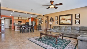 Single story built by D.R. Horton. Amazing floorplan with 4 bedrooms 3 bathrooms in a quiet community. Open floor plan with travertine tile, laminate wood flooring, newer modern paint, and recessed lighting. The master bedroom connects to the master bathroom giving you the luxury of privacy. Accompanied by dual wall closets for more than enough room for all your clothes. The other 3 bedrooms are on the opposite side of the home providing more privacy. The space between the living area, dining room, and the kitchen creates a very tranquil environment. The kitchen has an island for prepping meals, enjoying company, or even as a breakfast area to get your mornings started. Convenient central sink, gourmet countertops, and plenty of cabinet space. 3 car garage. The yard is peaceful for relaxing and patio area for hosting friends and family.