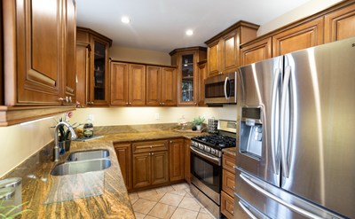 The recently remodeled kitchen is a chef's dream, boasting granite countertops, stainless steel appliances, and ample cabinetry for storage and organization. Adjacent to the kitchen, a cozy family room awaits, complete with indoor laundry and direct access to the rear yard oasis.