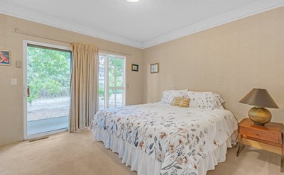 The upstairs master suite is a leafy treehouse retreat, complete with a spacious dressing area and private bath. An upstairs loft with adjoining office overlooks the living room, distinctive architectural elements that cater to the sense of openness throughout the home.