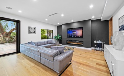Experience the ultimate in luxury living with this exquisite modern estate located in the prestigious South of the Blvd Tarzana area. This newly reconstructed and expanded 5-bedroom, 5-bathroom masterpiece is a true work of art, boasting custom-designed features and high-end finishes throughout. Enter through the custom-designed entryway and be greeted by a stunning Zen-inspired Buddha statue, creating a sense of serenity and calm from the moment you step inside. The open floor plan features soaring 10-foot ceilings and 8-foot solid wood doors, adding to the grandeur and sophistication of the home. The gourmet kitchen is a chef's dream, complete with an extra-large island, custom cabinetry, high-end stainless-steel appliances, and stunning custom tops and backsplash. The dining area is equally impressive, featuring a modern chandelier and custom wine closet, perfect for entertaining guests in style. The spacious and inviting family room is a true masterpiece, boasting a built-in TV station with an electronic fireplace, LED lighting, and a heating system, providing a cozy and welcoming atmosphere for you and your guests to relax and unwind in. The luxurious master bedroom is a haven of tranquility, featuring vaulted ceilings, recessed lighting, and a large walk-in closet with built-ins and a custom chandelier. The spa-like master bathroom is a true oasis of relaxation, boasting skylights, a huge stall shower with a rain showerhead, body jets, a handheld shower, and a spa tub with a bay window showcasing breathtaking peek-a-boo views of the valley. Step out onto the balcony and take in the stunning vistas, a truly unforgettable experience. Additional features include two spacious en-suite guest bedrooms with large closets and balconies, a main floor bedroom perfect for guests or an office, and a finished two-car garage complete with custom built-in cabinetry, a Tesla Wall charger, and a custom smoked glass garage door. The outdoor space is equally impressive, featuring a custom driveway, putting green, and a top-notch built-in BBQ area, perfect for hosting al fresco dinner parties under the stars. Don't miss your chance to own this one-of-a-kind luxury estate, complete with all the high-end features and amenities you could ever dream of.