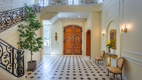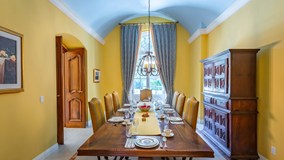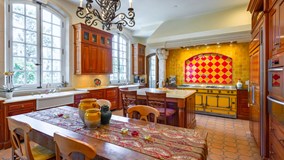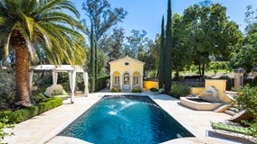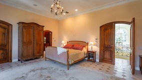 Hidden behind magnificent grounds and exquisite French artifacts, this estate has both intriguing and fascinating architectural features who's equal may only be found in the South of France. The landscape is surreal, beautiful beyond imagination. A citrus grove scents the air while French style manicured landscapes provide a sheltered retreat on more than two magical acres. A private drive leads to a generous motor court where one is greeted by the sounds of one of the two fountains found on property. Designed and crafted in 2006 using exacting specifications of a 17th century bastide, one feels transported ascending the limestone stairs, crossing the stone terrace, approaching the solid French walnut hand crafted doors to Provence. Every detail was passionately attended to in the creation of this solid stone home from the imported hand carved walnut wood features through-out, the imported stone floors, the authentic imported antique mantle pieces, the chef's kitchen fitted with the piece de resistance, a La Cornue French range, hand painted tiles, imported windows, the list of handcrafted features made by French artisans is seemingly endless. This timeless masterpiece also has the following design features; twelve foot ceilings, no concrete on property (all is limestone imported from seven different French quarries), a library, a barrel ceiling intimate dining room, Master with retreat, separate dressing room, and Master Bathroom complete with solid Cararra Marble soaking tub. The South of France in Redlands in calling.