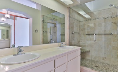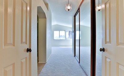 landing where you will find an extra-large main bedroom, complete with an en suite bathroom featuring a remodeled tiled shower and loads of closet space, plus two guest bedrooms and a complete 3rd bathroom. The house has been freshly painted with newly installed vinyl flooring and carpet throughout. Ronald Regan Park is within walking distance and includes basketball, tennis courts, BBQ, picnic area and playground. The home is in a convenient and peaceful location with easy access to the 57 and 60 freeways and low HOA dues. Here is your chance to get into the choice neighborhood of your dreams.