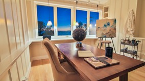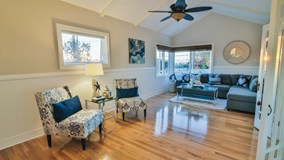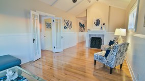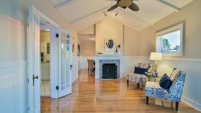Adorable modern beach cottage with ocean views and just a short walk to the sand. Appointed with rich wood floors, fresh paint, and luxurious finishes.
