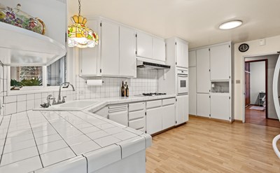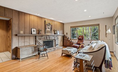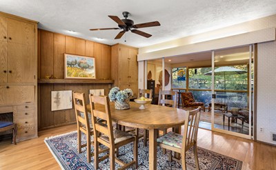 Main home approx. 1,800 SF includes 3 bedrooms and 2 baths. Enjoy a sun filled floor plan featuring oak hardwood flooring and custom woodwork throughout. Formal living room with handsome brick fireplace and adjacent friendly dining room accented with abundant cabinetry. Kitchen opens to a family sun room and has picturesque garden views. Indoor laundry room with utility sink.