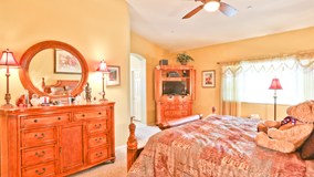 Nestled amongst the Hippard Ranch Vineyard, this home is a rare find! Its just over 2400 sq ft is entirely comprised within a single story. This property is uniquely positioned on both a cul de sac and a vineyard. Upon entering the house from the perfectly manicured front yard, you are welcomed by a formal living room, office and formal dining room. Guests will be immediately impressed with the vaulted ceilings, arched doorways and attention to detail. Down the hallway you will find two bedrooms, a powder room, a laundry room and the master suite. The master suite is a peaceful retreat that features a walk in closet and en suite master bath. The master bath features a soaking tub, double vanities and a large shower. Enter the family room and you are greeted with a spacious, open floor plan with an abundance of natural light, complete with a fireplace and flat screen television. Opening the family room, the kitchen features granite countertops, a large central granite island, a custom refrigerator to match the cabinetry and another informal dining area. From this great room, French doors open up to the back yard, a Eucalyptus tree-lined oasis that is complete with an outdoor bar-b-que, covered patio and beautiful landscaping. The most unique feature of this yard is the superb view of the vineyard that extends the length of the house and as far as the eye can see! Additional features of the home include RV access parking, a 3 car garage, in-home sprinkler system, storage shed, and a biking/walking trail within walking distance.