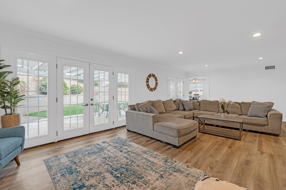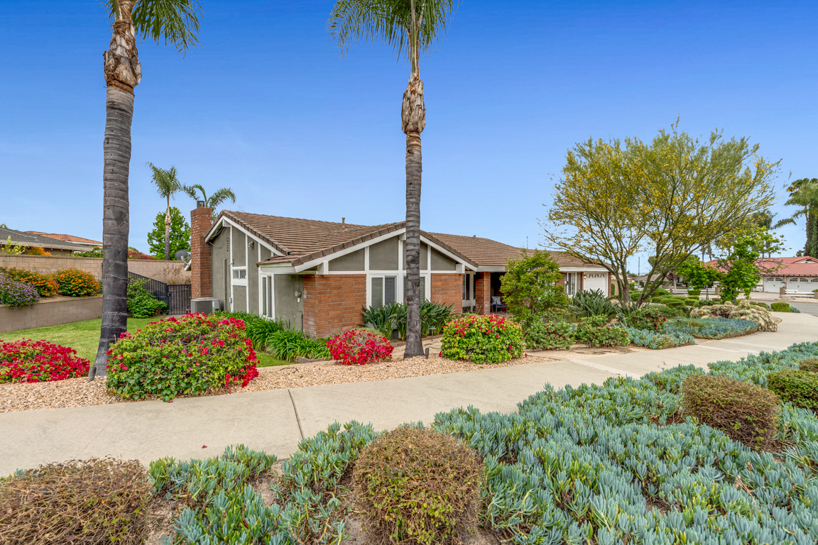 The front yard showcases vibrant, low-water landscaping enhanced by a drip irrigation system, creating eye-catching curb appeal with minimal upkeep. Outdoor spaces offer lush grassy yard areas plus additional room to relax, entertain, or personalize, extending the home’s overall livability. Ideally located near local parks, shopping, dining, and commuter routes, this residence presents an excellent opportunity to enjoy a well-rounded Southern California lifestyle in a welcoming neighborhood setting.