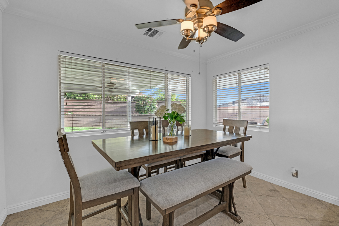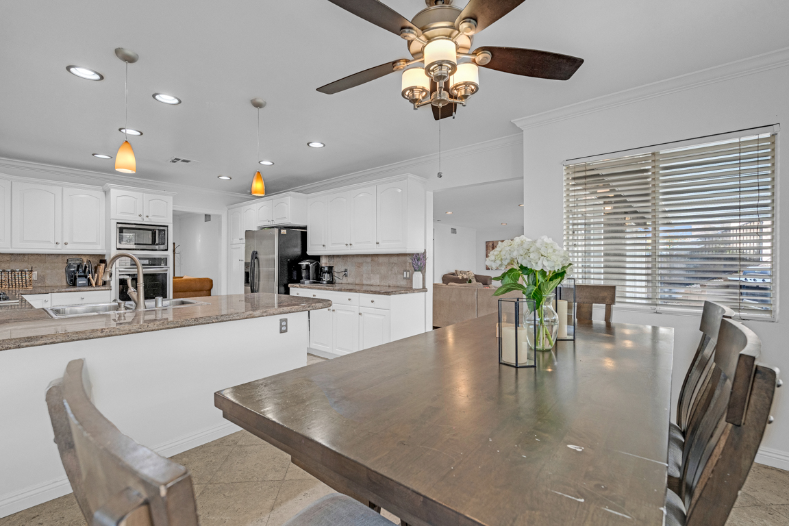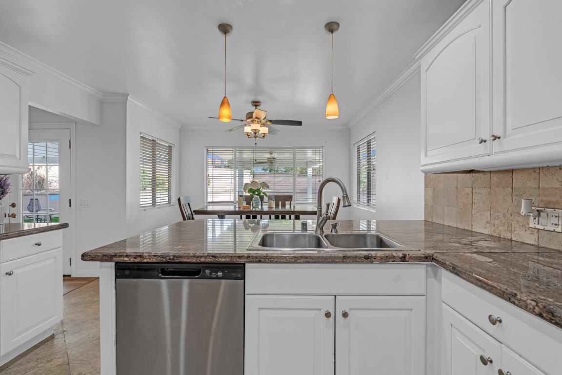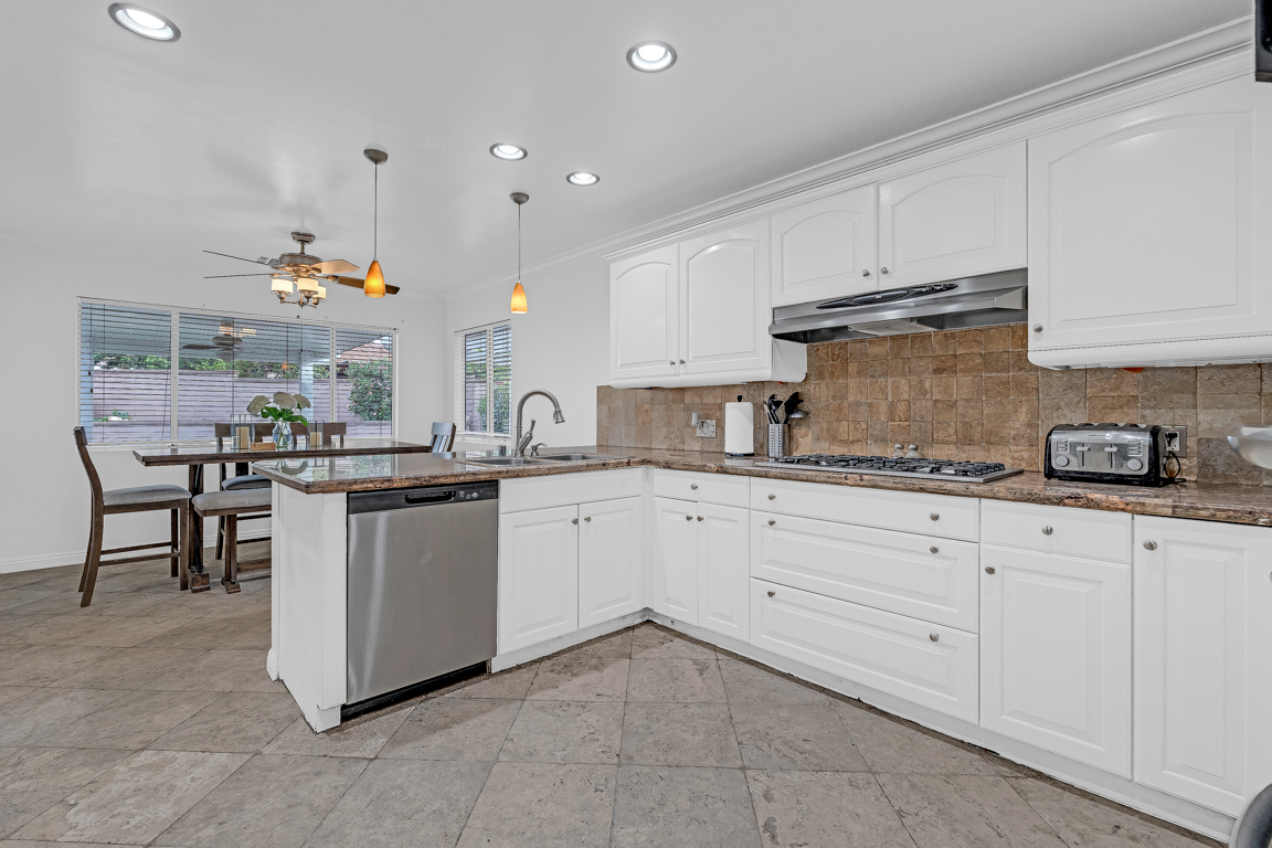 Situated within a desirable and well-maintained community, this thoughtfully designed 1-story residence offers a refined balance of comfort, functionality, and modern living. The interior welcomes you with an open and airy layout, where natural light enhances the sense of space and creates a warm, inviting atmosphere throughout. Generous living and dining areas flow seamlessly, providing an ideal setting for both everyday living and effortless entertaining. The kitchen is well-positioned at the heart of the home, featuring granite stone countertops, ample cabinetry, and generous workspace, all with seamless connectivity to surrounding gathering areas.