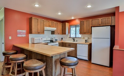 This peaceful retreat at the end of a cul de sac is nestled on over two acres of pine and oak forest. In summer enjoy bbqs on the huge decks with views. Once snow falls, the expansive property becomes a winter wonderland – ideal for sledding, snowmen and relaxing in the spa under starry skies. Johnny Way is a private road of just nine homes, each situated on acreage, offering privacy and tranquility not commonly found in Big Bear, yet only minutes to the slopes, lake and village. Inside offers a carefully updated home with hardwood floors, maple counters, recessed lights, freestanding fireplace and stunning copper soaking tub. Reverse floorplan features a great room plus three bedrooms and two baths upstairs. Downstairs offers a large family room, additional guest bedroom & bath, and a huge bonus room with its own bath and separate entry – ideal for a home office, workshop, gym or guest unit. Detached two car garage. Fully fenced lot. Tastefully furnished and ready to enjoy!