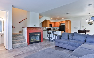 Welcome home to this spacious Townhome located in the Portofino Villas gated community. The lower level consists of an open concept design offering a spacious living room with a cozy fireplace, half bathroom, dining area and ample kitchen including appliances, plenty of cabinets and counter space. Lower level also features luxury vinyl plank flooring, plantation shutters and direct access to 2 car garage. Upstairs you will find 2 oversized bedrooms both featuring balcony patio area and large closets, 2 bathrooms and laundry area. Amenities include guard gated development & community pool & SPA. Centrally located near parks, shopping, dining and easy access to major freeways!