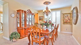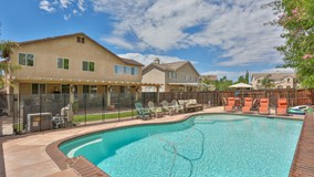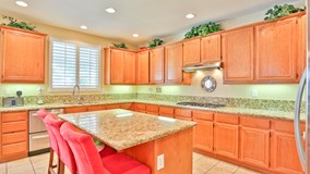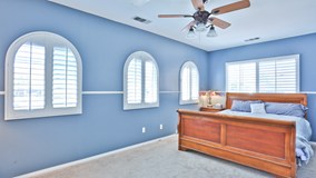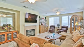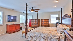 When you come through the front door you are welcomed by a beautiful entry way that has a chandler and a medallion inlay in the tile floor. This home has 6 bedrooms 4 baths with a downstairs Junior Suite. The kitchen has been upgraded with Stainless Steel appliances along with Granite Counter tops and also includes a coffee bar. Off of the kitchen the formal dining room over looks a private courtyard. The home has shutters throughout. The aluma-wood patio is a off of the kitchen/family room and is the length of the back of the home and includes 3 ceiling fans - perfect for entertaining. Other features this home has are Surround sound in the family room, intercom throughout and a water softener. The master bedroom closet has built in closet organizers including a ceiling fan.