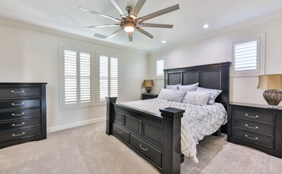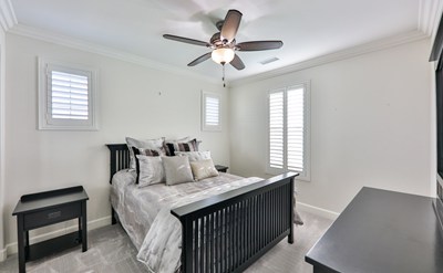 Additional distinctive highlights include: indoor laundry room with cabinets, Plantation Shutters, granite counter tops, dual pane windows, ceiling fans, crown molding, recess lighting.