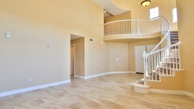 This striking beautiful home boasts a grand entrance with vaulted ceilings and spiral stair case.. Living room and dining room are divided by an elegant dual sided fireplace.. Spacious upgraded kitchen features granite counters, backsplash, brand new stainless steel appliances, breakfast bar, ample cabinetry, and plenty of counter space. Kitchen opens to family room, creating a warm open floor plan. Downstairs bed room and full bath. Upstairs, you will find 4 bedrooms and 2 bathrooms including a large master bedroom with walk in closet and spacious bath tub... Huge backyard perfect to design your very own Oasis... Conveniently located on a cul de sac in a beautiful community, close to 215 freeway and lots of new developments including shopping, restaurants, new theater, bowling, schools and neighborhood parks! NEW FLOORING THROUGH OUT, NEW PAINT, NEW APPLIANCES, NO HOA, NO HIGH TAXES!!!! Hurry!! This home will not last!!!