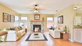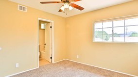 As you walk up the driveway, you will notice the rock detail and gorgeous red front door. As you come through the door you are greeted with the sweeping staircase, vaulted ceilings, neutral colors and open floor plan. The living room has new carpet and paint, a bay window and new light fixtures. The dining room is right off the living room and has nice tile flooring, new paint and new light fixtures. Through the doorway is the kitchen which has granite counter