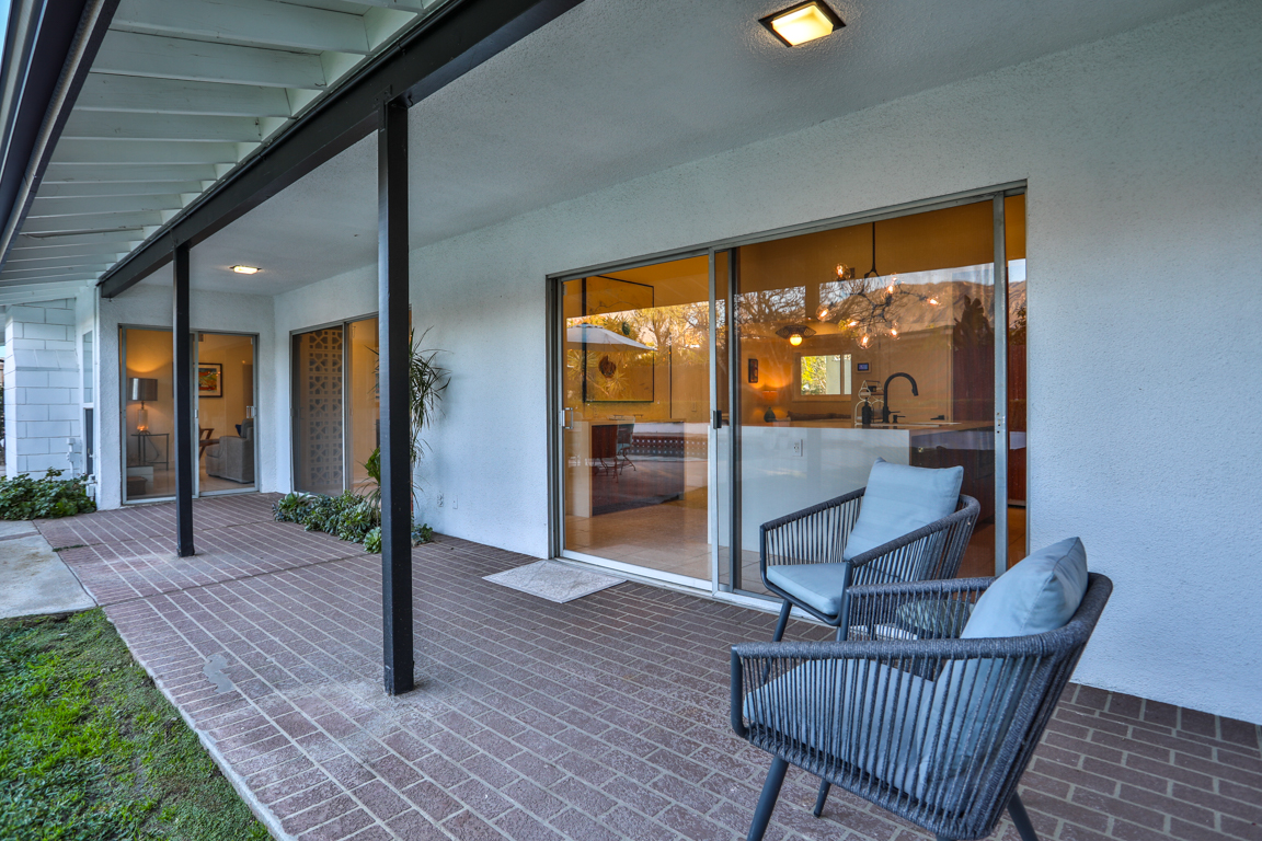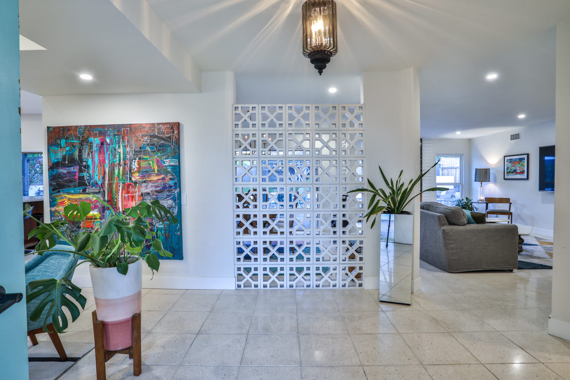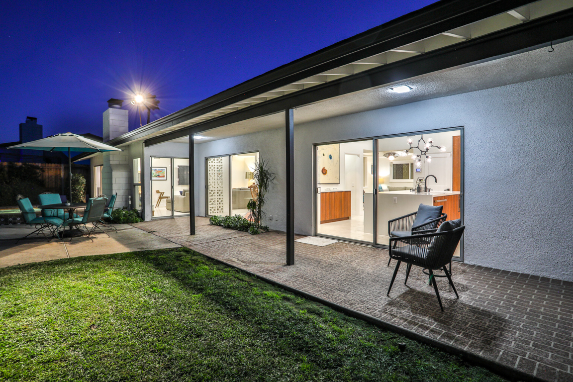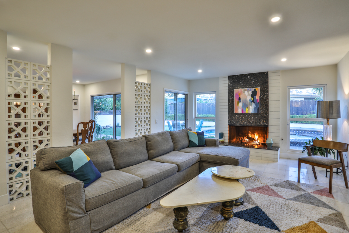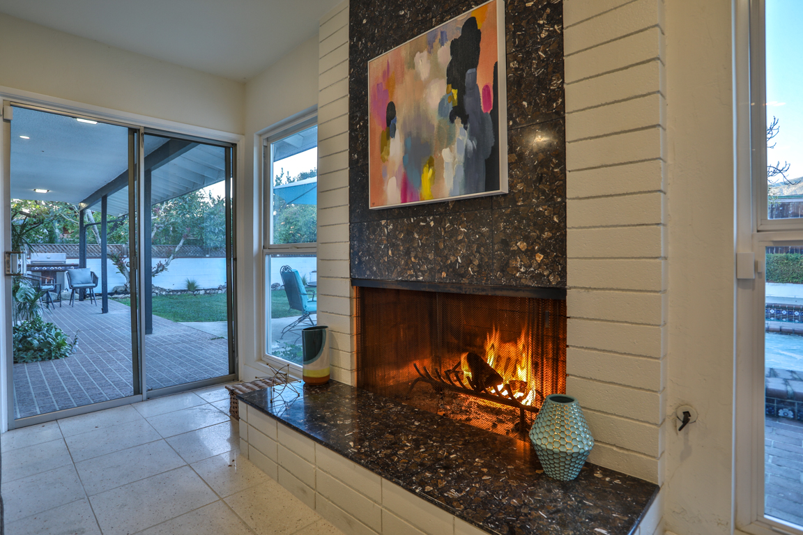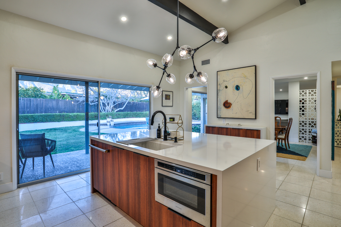 Enjoy the recent tasteful upgraded appointments and architectural elements throughout. Formal Living room and Dining room enjoy MCM breeze block accents; featuring lovely garden and patio views. Newly renovated, reimagined, and redesigned GE Monogram kitchen with high beamed ceilings. Living room features the original black terrazzo marble tiled wood and gas burning fireplace. Cozy family room seating nook. Primary master bedroom suite includes a walk-in closet and lavish bath.