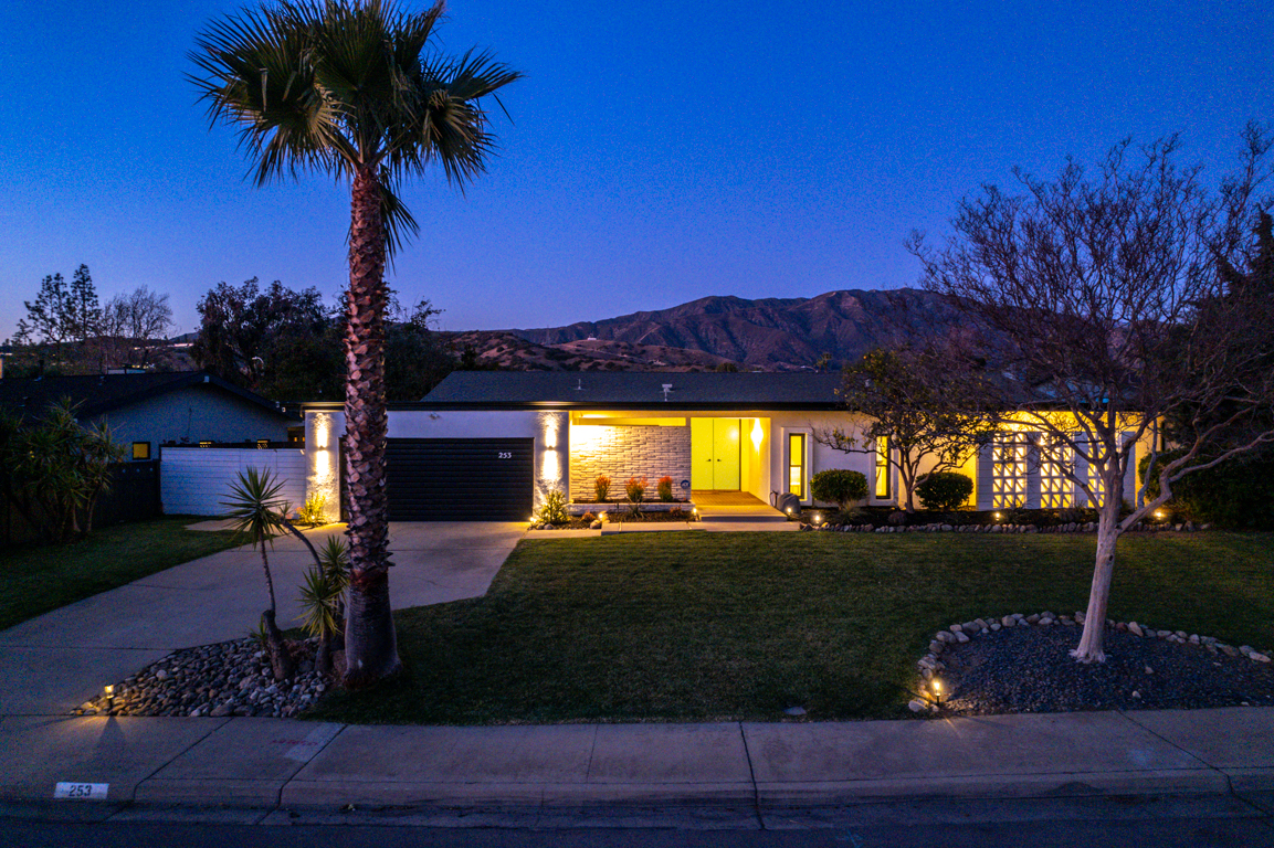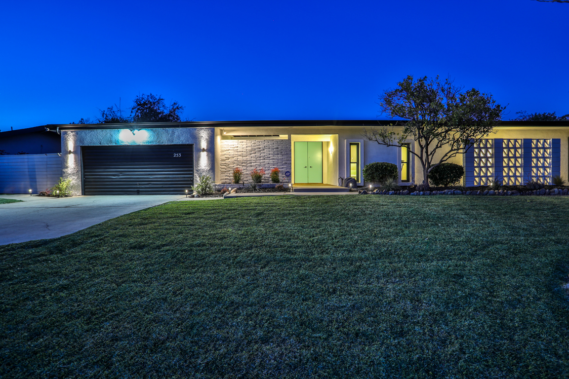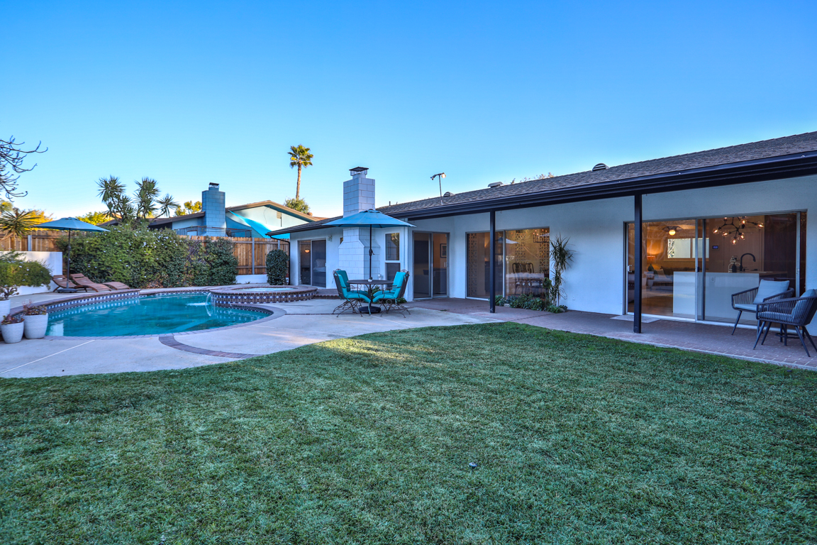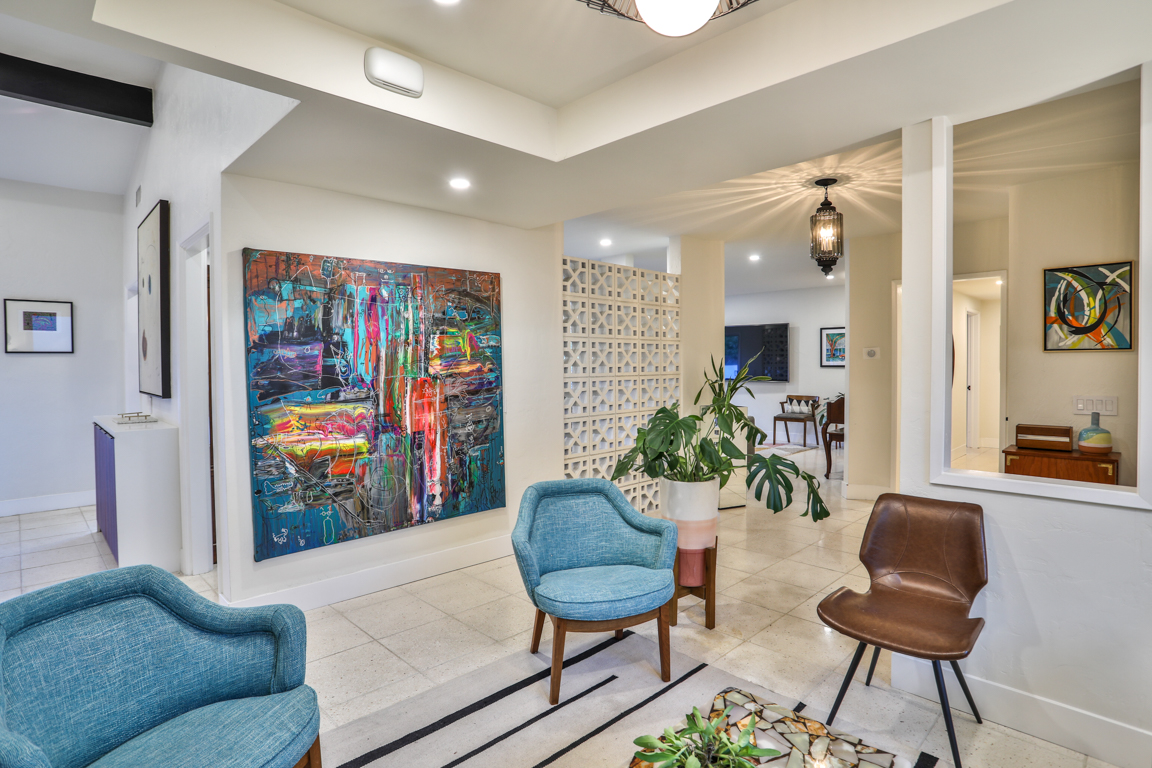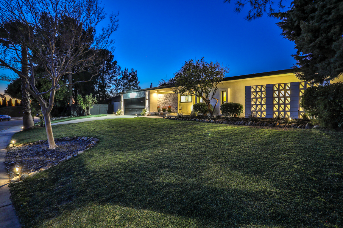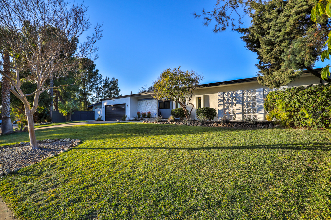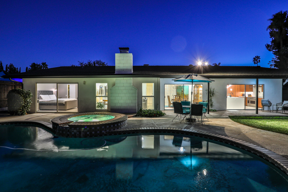 Enjoy the recent tasteful upgraded appointments and architectural elements throughout. Formal Living room and Dining room enjoy MCM breeze block accents; featuring lovely garden and patio views. Newly renovated, reimagined, and redesigned GE Monogram kitchen with high beamed ceilings. Living room features the original black terrazzo marble tiled wood and gas burning fireplace. Cozy family room seating nook. Primary master bedroom suite includes a walk-in closet and lavish bath.