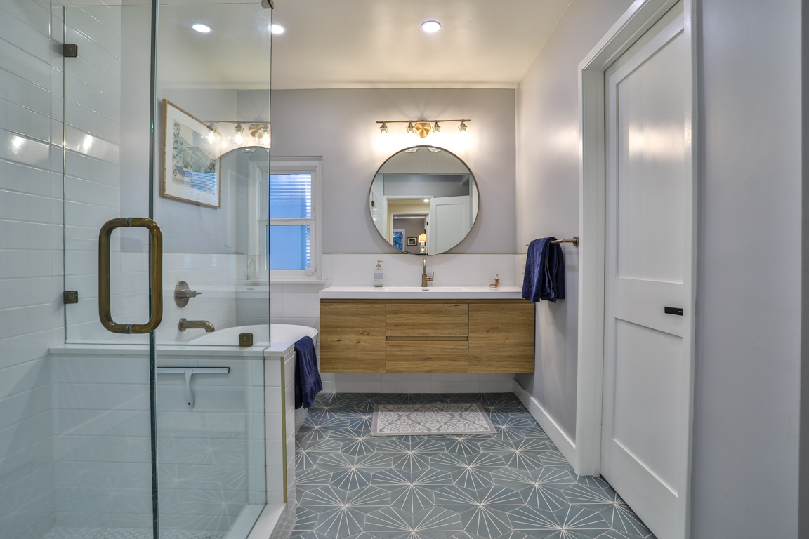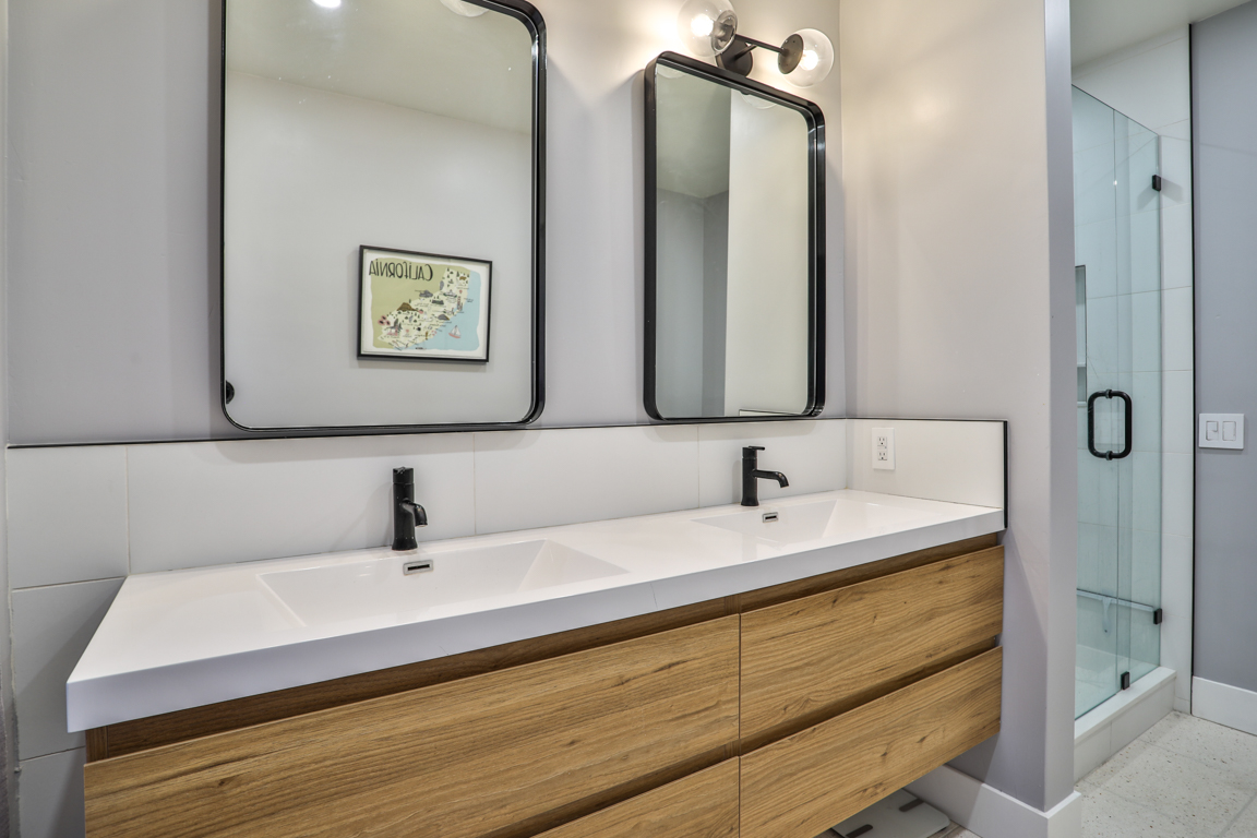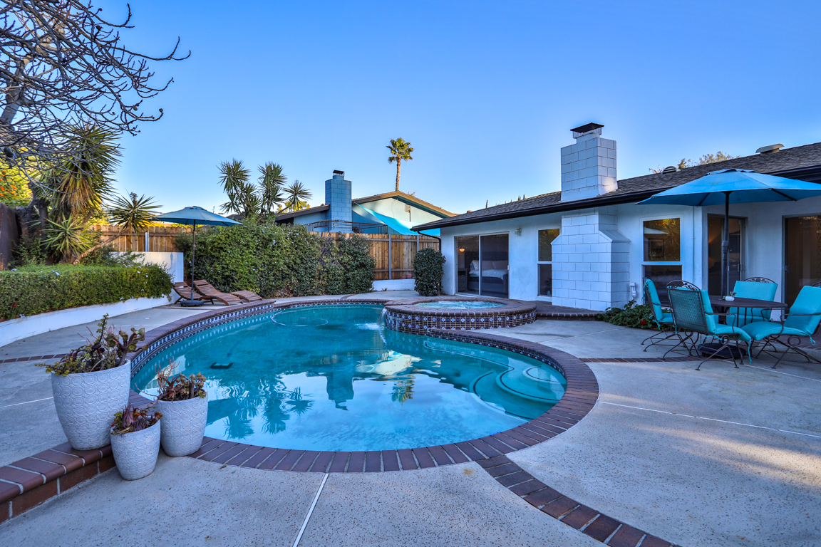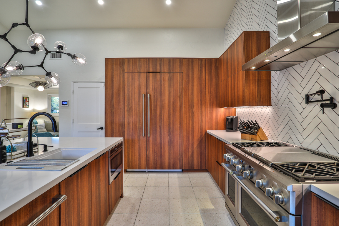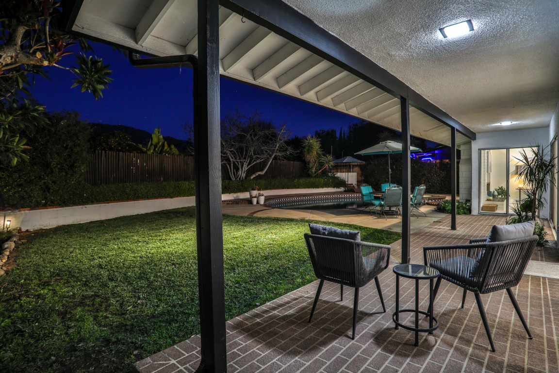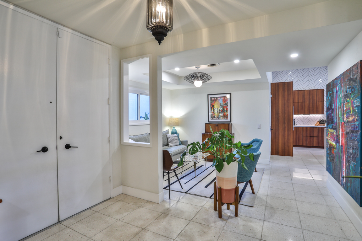 Enjoy the recent tasteful upgraded appointments and architectural elements throughout. Formal Living room and Dining room enjoy MCM breeze block accents; featuring lovely garden and patio views. Newly renovated, reimagined, and redesigned GE Monogram kitchen with high beamed ceilings. Living room features the original black terrazzo marble tiled wood and gas burning fireplace. Cozy family room seating nook. Primary master bedroom suite includes a walk-in closet and lavish bath.