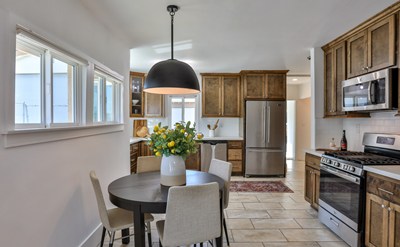 From the covered front porch with stone detail, to the wide overhanging eaves, this Craftsman beauty features all the details you love with many of the major upgrades you desire! Gleaming hardwood floors, recessed lighting and stone fireplace is the central feature of the living area. Natural lighting pours into the separate sitting area off the front. Trim, columns, built-in shelving & wide baseboards adorn the home throughout. Contemporary style eat-in kitchen with stone flooring, quartz counters with subway tile backsplash, an abundance of cabinetry with soft close drawers and stainless steel appliances. Front bedroom is ideal as a study or office. Sprawling master with slider out to your private backyard. A third and fourth bedroom off the hallway, along with a full bathroom featuring stone flooring, quartz counters and wide tile surrounding the bathtub. W/D connected in the garage, along with a separate laundry area inside the home. 2 car garage - potential for future ADU. Backyard patio area leads into your grassy yard with a mature grapefruit tree. Per sellers, updates since 2018: New Roof, Solar Panel System, Sewer Main, Tankless Water Heater, Added HVAC & Attic Insulation, Low-E Windows throughout and Slider Door, Earthquake Bracing & Bolting, Interior Painted. Close proximity to nearby restaurants, stores, yoga studios and more. With the upcoming Crenshaw/Expo line & just a short distance to SoFi Stadium, Hyde Park is on the Rise!!