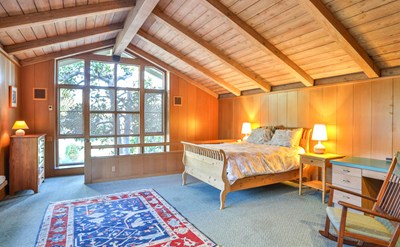 Multi-Purpose Room/Potential 2nd Master Bedroom/Guest Quarters - This wonderful addition to the property above the garage was completed in 1965. An ideal office, game room or guest quarters, two built-in desks, file cabinet and bookcases. The room features vaulted ceilings and wood paneling with lots of light and airy space. A stunning large picture window overlooks the pool and gardens. Private access is available to this area of the home (think ADU).