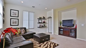 Gorgeous condo located in the desirable Serafina community. This condo has the perfect location which features 2 bedrooms & 2.5 bathrooms with direct access to garage. You are invited by a spacious living room that opens to separate dining area with lots of natural light. The gorgeous kitchen has granite counter tops, stainless steel appliances and upgraded cabinets, great for entertaining family and friends. One bedroom is located downstairs with a full bath. Recessed lighting throughout the house. You'll enjoy the swimming pool, spa, BBQ areas, playgrounds, gazebo, and basketball court. HOA pays for trash, water and exterior maintenance. Walk to major shopping centers, and I-15, 91 FWY, 60 FWY are just minutes away. Welcome Home! This is a FHA approved property.