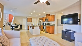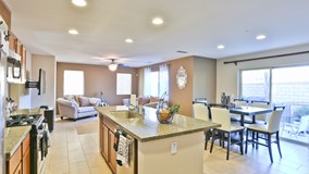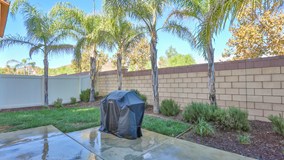 FORMER MODEL HOME! Stunning home with 3 bedrooms, 3 baths, plus bonus room. Upgrades include ceramic tile flooring throughout the downstairs living space, designer paint and window treatments throughout. Open entertainment-style kitchen featuring granite slab countertops, beech wood cabinets, GE stainless steel appliances, and walk-in pantry. Large master bedroom with attached master retreat or additional bedroom. Master bath includes large shower, vanity with dual sinks, and a large walk-in closet. Spacious landscaped backyard features mature palm trees, lush grass and large concrete patio. Don't miss out on this fabulous home – still under builder warranty! Located in the Master Planned community of Canyon Hills offering over 900 acres of open space, recreation centers with pools/spas, splash pad, parks, dog park, tennis and basketball courts.