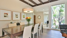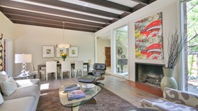 The Harry O Diamond Residence; John Matthias, Designer, 1955. Located on a gated 19,000+ SF lot in the exclusive Linda Vista neighborhood, this 4 bedroom 2.5 bath Mid Century Modern home was published twice in Sunset Magazine, first for its flexible floorplan centered around an atrium, and later for its historic grounds, which were originally part of Pasadena's Great Oaks estate and provide unparalleled privacy. The spacious living room features high beamed ceilings, a fireplace, and walls of glass overlooking both the atrium and mature gardens surrounding a series of terraces that lead to the swimming pool. The updated kitchen includes stone counters, top-of-the-line appliances, a pantry and large island with breakfast bar overlooking the family room. There are 3 bedrooms downstairs, 2 of which are large and have ample walk-in-closets, and an additional large bedroom upstairs with walk-in-closet, full bath and balcony overlooking the atrium. THIS is quintessential California living!