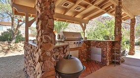 Enjoy a piece of Heaven on Earth with this beautiful custom built and updated Joshua Tree equestrian home located on a 2.5 acre secluded lot in a certified wildlife habitat, 1.5 miles away from the Joshua Tree National park with famous camping, and rock climbing! The main home (built in 2004) has 2,680 living sq.ft, 3 beds, 2 baths, a wide open living room and kitchen floor plan with a wet bar, two fireplaces , two AC units, extra insulation for keep the heat out and cool air in, dual pane windows, an indoor spa room, large home office and other delightful upgrades throughout. This property also has a full 1,900 sq.ft mechanics shop with 11’ ceilings including office space, kitchenette and 3/4 bathroom in addition to art studio, horse stables, hay storage, 9kW solar panels, rolling 9’ door, RV connections, 3-phase electricity inverter and an observation deck for stargazing. The exterior has a horse corral, underground rainwater storage tank, greenhouses, backyard built-in BBQ , an above ground pool, water fixtures with a koi pond, lots of fruit trees, desert flowers and clear skies with views of the majestic landscape that people from all over the world come to see when visiting Joshua Tree!