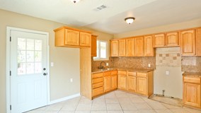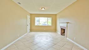 Take a look at this gorgeous property waiting to be called home. As you come up the driveway, you will notice the mature palm trees, nice green landscaping, front patio area and newly painted exterior. As you walk through the front door, you will see how open the floor plan is along with the neutral paint colors. The living room focal point is the nice brick fireplace with white mantle and tile design in the center of the room for that extra pop. The kitchen is just off the family room and has granite counter tops with granite back splash, lots of cabinets and an area for a dining set. Down the hall are the 3 bedrooms and bathroom. The bathroom has new tile floor, shower in tub, new paint and granite counter vanity. Each of the bedrooms has new carpet, fresh coat of paint and new light fixtures. The master bedroom is spacious with one small closet and a huge walk in closet with shelving and storage! Outside in the backyard, there is a large covered porch perfect for family gatherings. The yard good sized and ready for your personal touch. The garage is towards the back of the yard and has been freshly painted to match the house.